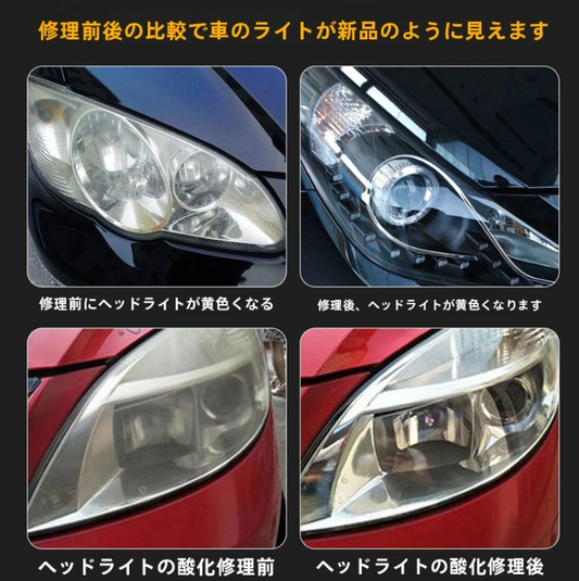 車用ヘッドライト修復剤|フロントライトリフレッシュツール、ヘッドライト研磨・修復クリーム、明るさを取り戻す
