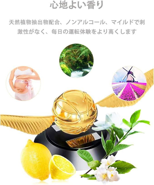 CAFELE 車用芳香剤 高級カー用品 2024新型 アルミ合金製 ソーラー回転式 静音 フランス産天然香料