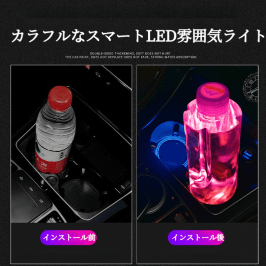LEDコースター|カラフル・カー用品・車載・USB充電・防滑・雰囲気ライト・おしゃれ