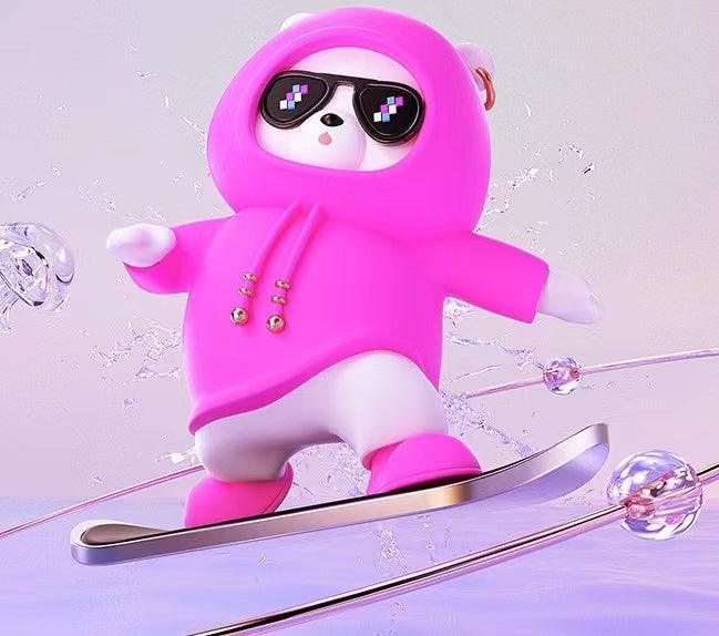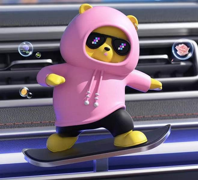 【かわいい外観】フードをかぶったクマがスケートボードを滑る姿がかわいらしさを増し、爽やかなカッコよさを与え、運転中も楽しさが感じられます。