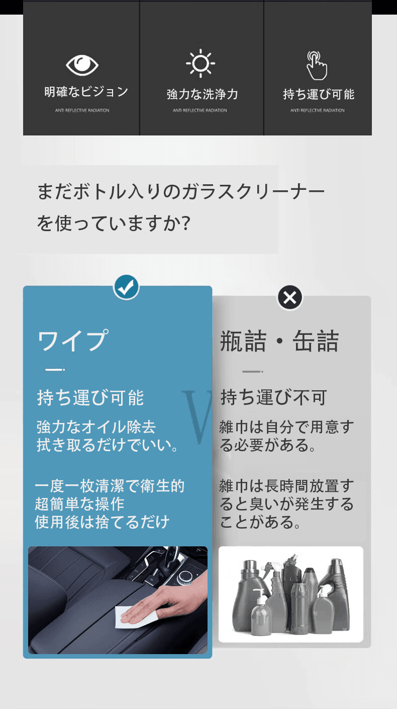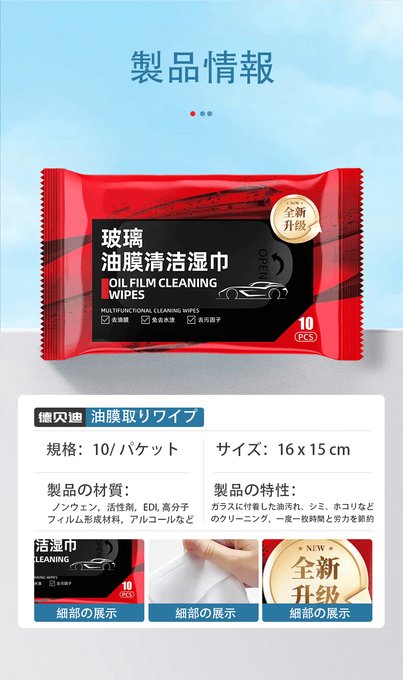 急送出荷(4パックセット)自動車ガラス油膜 除去ワイプ カーウィンドークリーナー 強力汚れ落とし