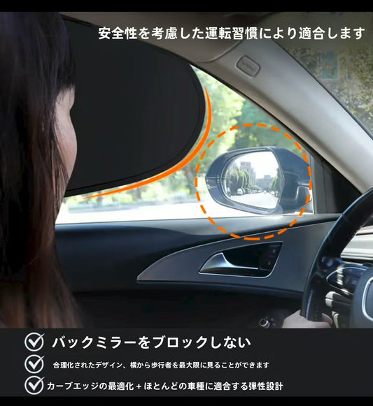 【車用サンシェード】サイドウィンドウ遮光カーテン UVカット 遮熱・目隠し対策 車内用日よけシェード 簡単取付けタイプ
